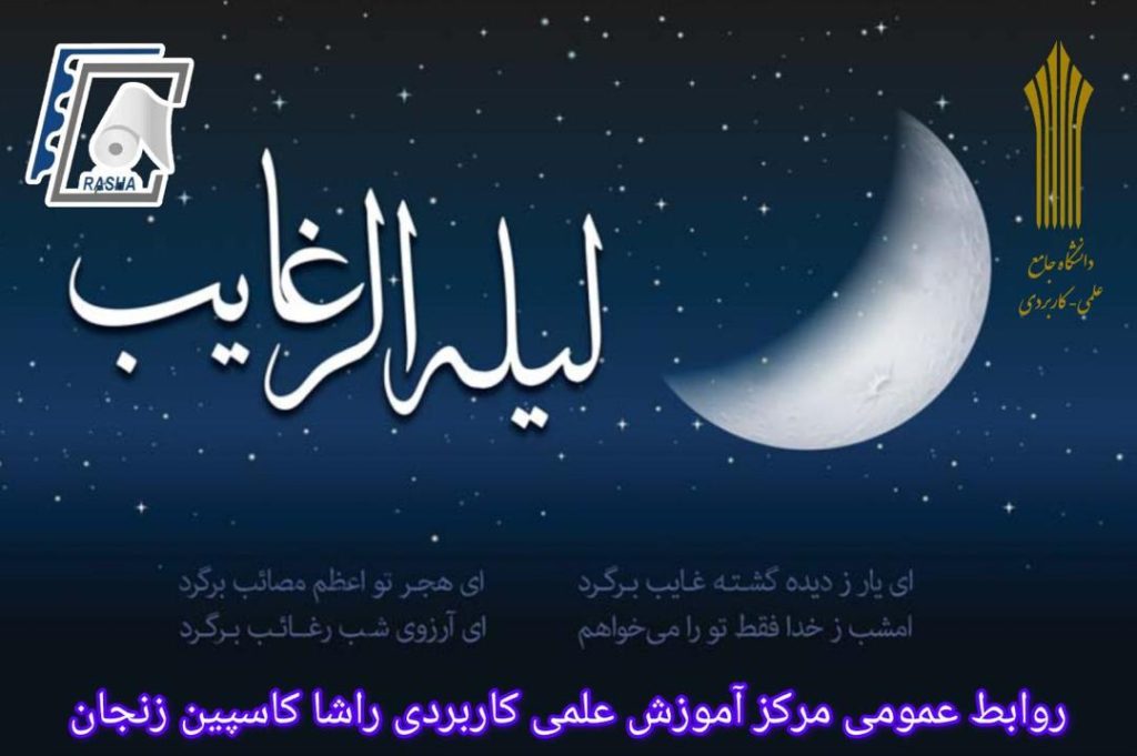 بسماللهالرحمنالرحیم اساتید گرامی، دانشجویان عزیز و همکاران محترم مرکز آموزش علمیکاربردی راشا کاسپین 🌿 فرارسیدن لیله الرغائب، شب رحمت و اجابت دعاها ✨ را صمیمانه تبریک عرض مینماییم. این شب پرفضیلت، فرصتی ارزشمند برای خلوت با خداوند متعال، بازنگری در مسیر زندگی و تقویت امید و آرامش در دلهاست 🤍 امیدواریم در پرتو برکات این شب عزیز، تلاشهای علمی، آموزشی و حرفهای شما عزیزان با توفیق، پیشرفت و سربلندی همراه باشد 📚🌟 و مسیر رشد فردی و جمعی خانواده بزرگ راشا کاسپین همواره روشن و ثمربخش بماند. از درگاه خداوند متعال، قبولی طاعات و عبادات، سلامتی و موفقیت روزافزون همه شما را مسئلت داریم 🤲 با احترام مرکز آموزش علمیکاربردی راشا کاسپین زنجان 🌙✨🤍